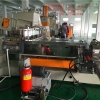 新能源充电桩低烟无卤电缆料造粒机 是将双螺杆高速,强混炼与单螺杆低速,低温,弱剪切特性相结合,扬长避短,工艺自动化程度高,流水线作业,分散效果优异,产量高,工况清洁,是当今热敏性,剪敏性物料高效配混改性的首选机型。低烟无卤电缆料造粒机独特的带滑轨的对吹式模面热切机头,机头部分通水冷却,单螺杆芯部通水冷却,有效防止了在生产过程中粘粒现象,产量显著提高。